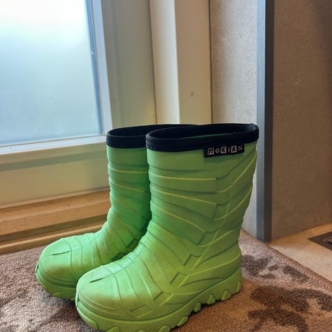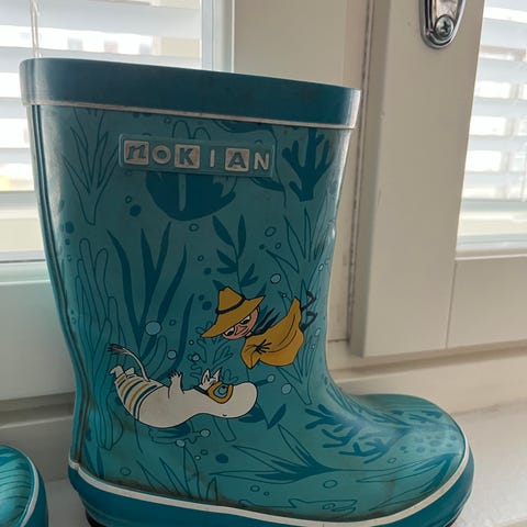 Nokian Muumi lasten kumisaappaat tytöille, koko 23. Hyvä ja ehjä kunto, pitävät vettä. Käytetty vain yhdellä, viime syksynä päikyssä reilun kuukauden silloin kun kelit kumppareita vaativat ja tälle keväälle ovat nyt pienet. Tarkempi pesu ostajalle, eli nyt vain huuhdeltu, lievät likajäljet varmasti lähtevät kunnon pesulla ja aineilla.
