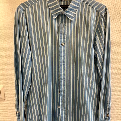 Marimekon puuvillainen miesten/unisex-kauluspaita persikka/tummansinisellä Piccolo-raitakuosilla koossa S. Käytetty mutta huollettu aina huolellisesti pesulapun ohjeiden mukaisesti, olemme kissatalous mutta kissat eivät koskaan oleile vaatteiden kanssa kosketuksessa, tätäkin ollaan säilytetty muiden kauluspaitojen kanssa kannellisessa muovilaatikossa vaatekaapissa.