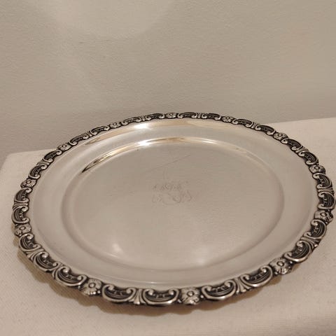 Tarjottimet, halkaisijat 30.5cm x2, 33cmx2 ja 36cm. Uushopea alpakka. Voin postittaa, vastaanottaja maksaa postikulut. Yhteishintaan.