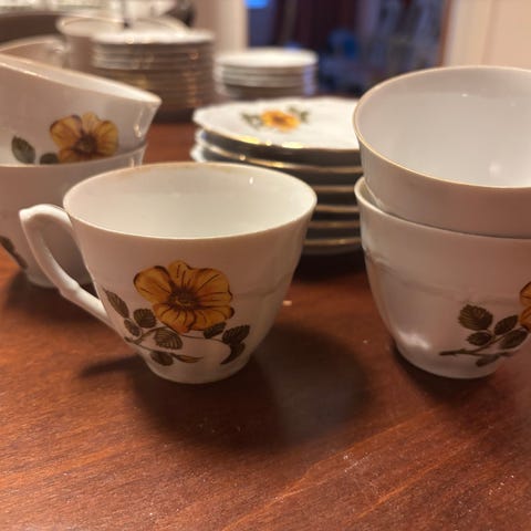 Myydään Walbrzych kuppeja x4 (ei varmuutta kuuluvatko tähän sarjaan) ja aluslautasia x4. Tiedustelemalla lisäkuvia ja kuntotietoja.