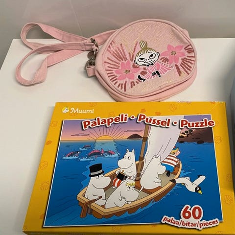 Vanha muumipalapeli. 30 palaa, 3 mm puuta, 25 x 21 cm.