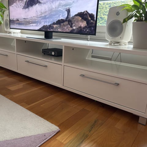 Myydään Sotkasta vuonna 2019 ostettu, valkoinen TV-taso.