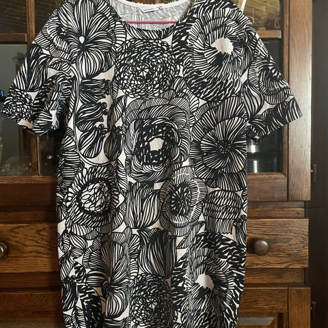 Myynnissä erittäin hyväkuntoinen Marimekko tunika. Ei pesunukkaa eikä kulumaa. Koko XL. Taskut sivussa. Kainalo kainalo 58 cm.