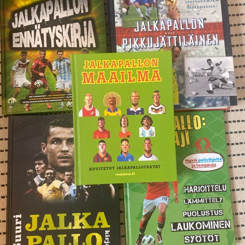 Kovakantinen Jalkapallo-kirja, jossa opetetaan jalkapallotähtien temppuja. Kuvitettu, 64 sivua.