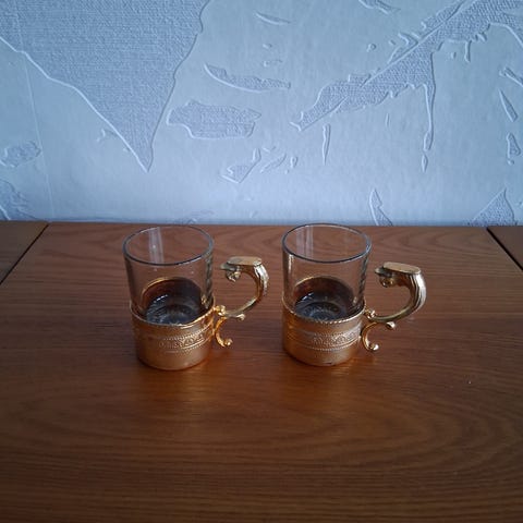 Timo Sarpanevan Iittalalle suunnittelema Karaatti-sarjan lasi kullanvärisellä pidikkeellä. Sarja oli tuotannossa 1980-luvulla. Lasin korkeus on 55 mm, halkaisija 55 mm ja tilavuus 12 cl.