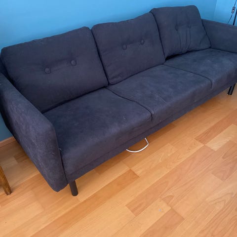 Kokeillan vielä ennen kaatopaikalle vientiä jos joku tämän haluaisi. Hyvä sohva mutta nyt jo huonossa kunnossa, toiselta puolelta puuttuu käsinoja kokonaan ja toisenkin käsinojan mekanismi rikki. Vastikään myös toisen istuintyynyn vetoketju meni rikki eikä ole yritetty korjata. Eläintalous joten mukana myös koirankarvoja. Jos kuitenkin kaikesta tästä huolimatta kiinnostaa niin tiistaihin mennessä saapi hakea Kiimingistä.