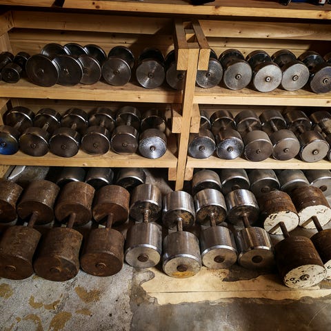Ylimääräisenä Wrangen 22,5kg käsipainot.
