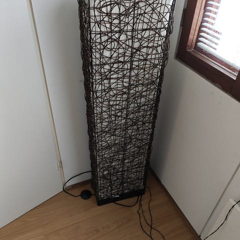 Jalkalamppu,töpselistä syttyy mutta katkaisija rikki.Varjostimen päältä puuttuu mutteri. Valmistettu Suomessa,merkki Ker Luks jota en saa Ikeasta vaihdetuksi.