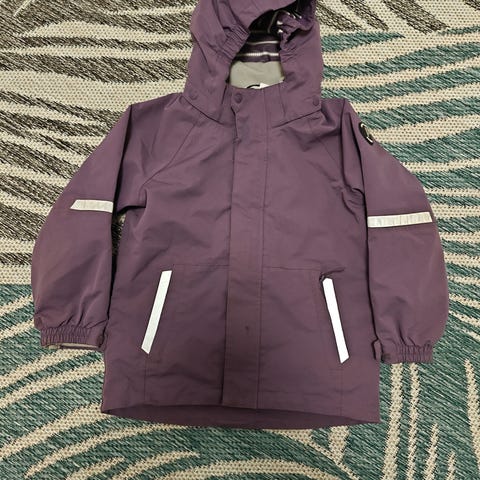 Muuten erittäin hyväkuntoinen Polarn O. Pyret- merkkinen kuoritakki, mutta vetoketjun yläosassa kulumaa.