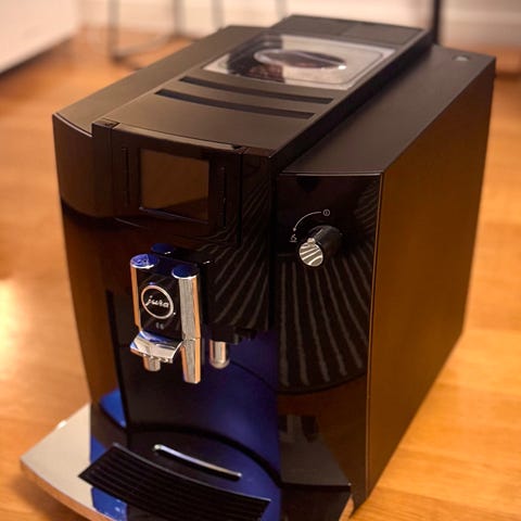 Tyylikäs, siisti ja juuri huollettu kahviautomaatti, uudet tiivisteet. Mukana myös Bluetooth-yhteys.