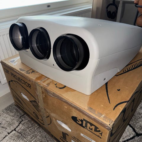 Ostetaan vanha kunnon kolmea kuvaputkea hyödyntävä CRT videotykki retrofuturistisia elokuva-iltoja piristämään.