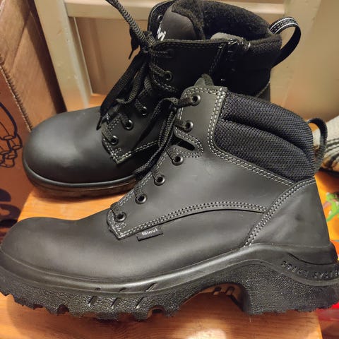 Sievin uudet Spike system talvikengät. Koko 42. Kantapään sisäsyrjässä vipu, jolla kantapäähän nousevat piikit liukkautta vastaan. Samasta vivusta piikit menevät piiloon pohjaan.