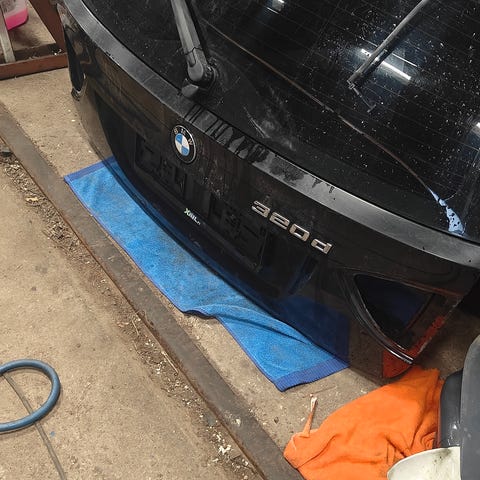 E91 bmw musta kattoverhoilu itse maalattu täydelliseksi