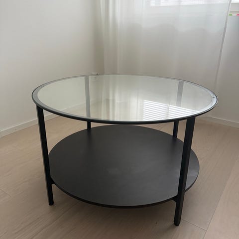 Myydään muutossa tarpeettomaksi jäänyt siisti valkoinen sohvapöytä lasikannella.
