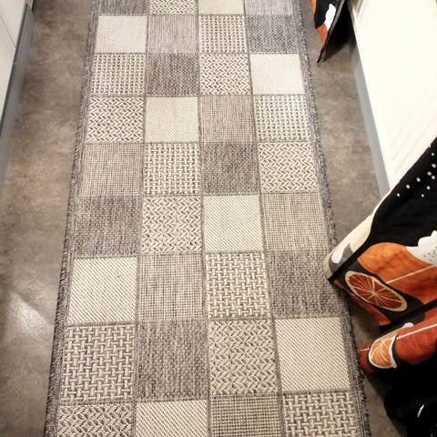 ”Matossa on kaareva, uritettu kuviopinta, joka tuo elävyyttä yksiväriseen ilmeeseen. Sopii käytettäväksi esimerkiksi eteisessä, käytävässä tai muissa kodin tiloissa. Materiaali on tasapintainen ja maton reunat on kantattu siistin lopputuloksen saamiseksi.”