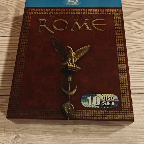 HBO Rome The Complete Collection dvd-boksi. Pakkaus sisältää televisiosarjan Rome molemmat tuotantokaudet erillisinä dvd-koteloina yhteisessä kovakantisessa suojakotelossa. Kielenä englanti, takakannen mukaan mukana on useita tekstitys- ja äänivaihtoehtoja. Ikäraja 15. Fyysinen formaatti: dvd.