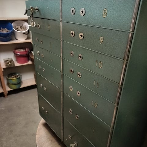 Pankin turvalokerikko. 1 lokero murrettu 1 avain puuttuu. Säilytä arvotavarat, ammukset ym turvallisesti. Mitat k900,l610, syvyys 450mm. Kaverin puolesta myynnissä.