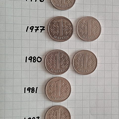 Kuvanmukaiset yhden markan kolikot 12kpl: