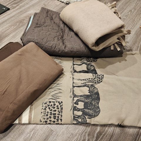 Kahdet erilaiset mustavalkoiset petivaatesetit. Yhdet harmaa valkoiset. Kaikkiin setteihin kuuluu kaksi pussilakanaa ja kaksi tyynyliinaa. 10€/setti.