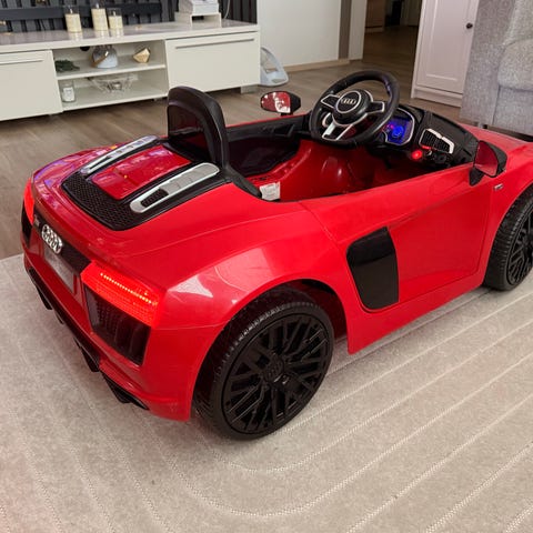Myydään siis hyvässä kunnossa oleva lasten sähköauto ja laturi. Valmistaja on laadukas saksalainen Jamara. Auton malli on Audi TT RS ja väri punainen. Ikä suositus on +3v ja itse sanoisin, että vielä 5-vuotias mahtuu ajamaan tällä.