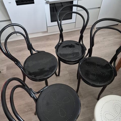 Tuoleissa on havaittavissa kulumaa ja naarmuja, mutta ne ovat rakenteellisesti ehjät.