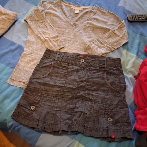 Kaksi neuletakkia cubus musta ja Zara harmaa L, istuu S.