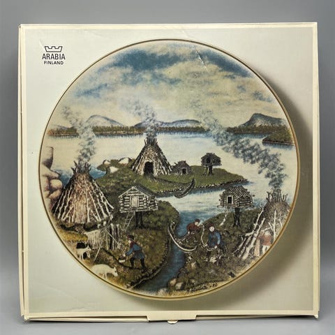 Arabia Lappi isot taidelautaset 6-osaa vuodet 1980-1985.Design Andreas Alariesto. Alkuperäisissä laatikoissa.