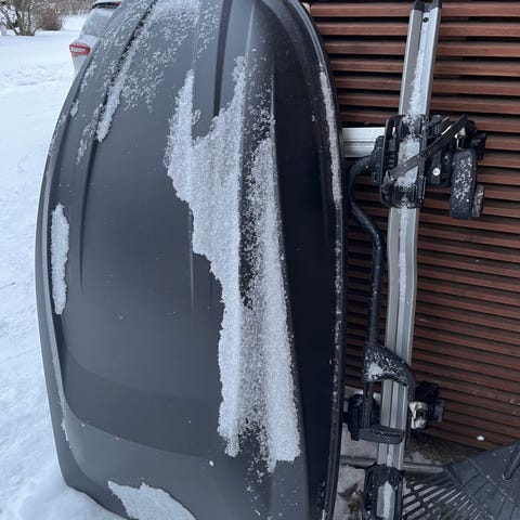 Kattoboxi auton katolle. Soveltuu esimerkiksi matkatavaroiden ja urheiluvälineiden kuljettamiseen. Kiinnitetään auton kattotelineisiin. Väri tumma.