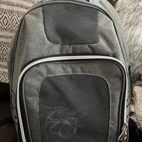 Hyvässä kunnossa oleva kantoreppu pienelle koiralle, kissalle tai muulle pienelle eläimelle. On käytetty kerran tai pari linnun kuljettamiseen vuosia sitten.