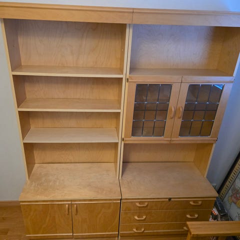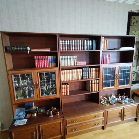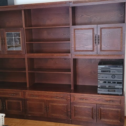 Annetaan kirjahylly, kaikki vetimet ei ole kunnossa. Menee tietääkseni kahteen osaan joten isompi auto tarvitaan kuljetukseen. Linnainmaalla