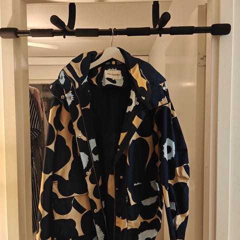 Ompelijan ompelema (uniikki) vuorellinen Unikko takki. Vähän käytetty, kangas punainen unikko. KAI-KAI 54 cm ja pituus 57 cm