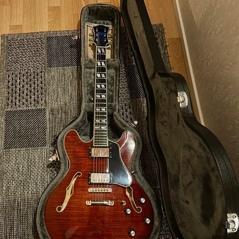 Tästä upea ja hyväkuntoinen keppi myyntiin! Made in Japan vm.2017. Käytettynä ostettu. Laukussa oon säilyttänyt sisällä kokoajan ja ollutkin vain kotikäytössä. Eipä tuosta isompia mainittavia vikoja löydy. Kolhujakaan en löydä. Jos hakemalla haetaan vikoja, niin pientä plektran jättämää naarmua ja Ala E:n hienovirittimen maali hieman kulunut. Ei luulis haittaavan. Nauhat ovat hyvässä kondiksessa! Väri on See thru Black, jonka eri sävyt vaihtelevat valosta riippuen. Standard E-vireessä.Kova laukku sisältyy hintaan.