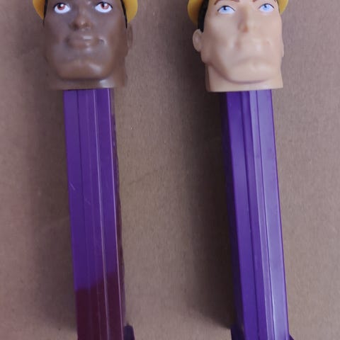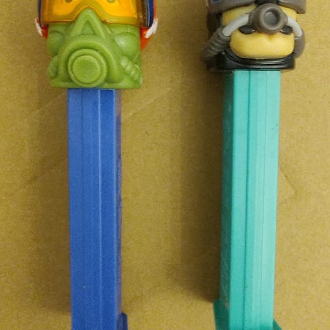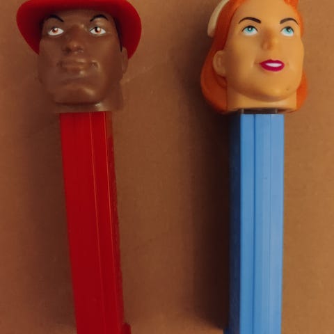 Kuvan mukaisessa kunnossa olevat kolme pez hahmoa. Koiran jalassa on hieman teippiä tai sinitarra jäännettä (kts. kuva). Naisen hatussa vuosi 2003. Hieman pölyn jäämiä saattaa löytyä.