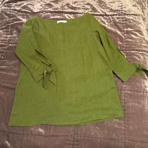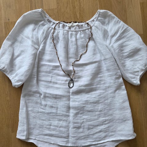 100% pellava. Sinivalkoraitainen. Potuus olalta helmaan 69cm. Kainalo-kainalo 54cm. Hihan pituus olalta hihan suuhun 45cm. Hihoissa nauha ja nappi millä voi lukita käärityn hihan. Kulkeutuu postissa S kokoisessa paketissa 7,9e