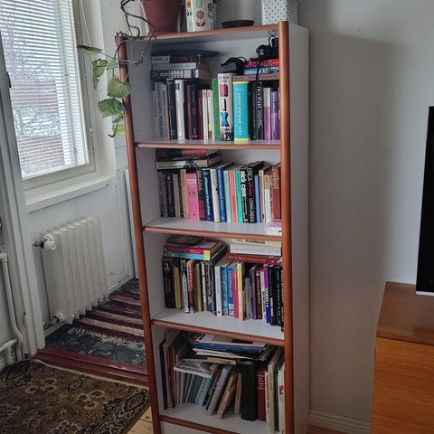 Ruskeat kirjahyllyt ja säilytyshyllyt puujäljitelmää. Kokonaisuuteen kuuluu kaksi korkeaa avointa kirjahyllyä useilla hyllytasolla sekä matalampi kuutiohylly, jossa on useita neliömäisiä lokeroita. Sopii kirjojen, kansioiden, koriste-esineiden tai muiden tavaroiden säilytykseen olohuoneessa, työhuoneessa tai lastenhuoneessa. Hyllyt voidaan sijoittaa vierekkäin yhtenäiseksi kokonaisuudeksi tai käyttää erillisinä.