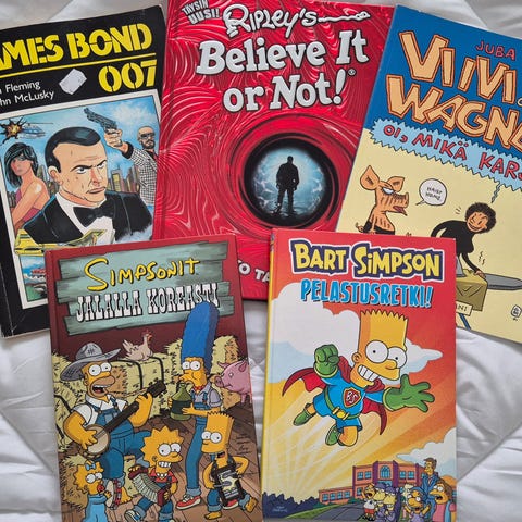 Laatikollinen kirjoja pari euroa kpl tai kaikki kympillä.