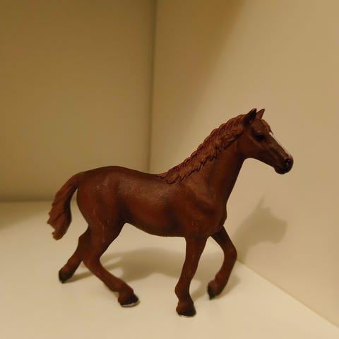 Schleich Amerikanratsu tamma, 2019. Pientä käytönjälkeä näkyvissä.