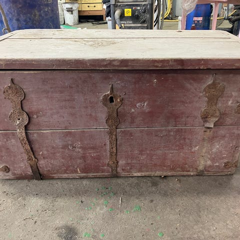 Siististi maalattu, iso vanha talonpoikaisarkku esim tekstiilien säilytykseen ja laskutasoksi.