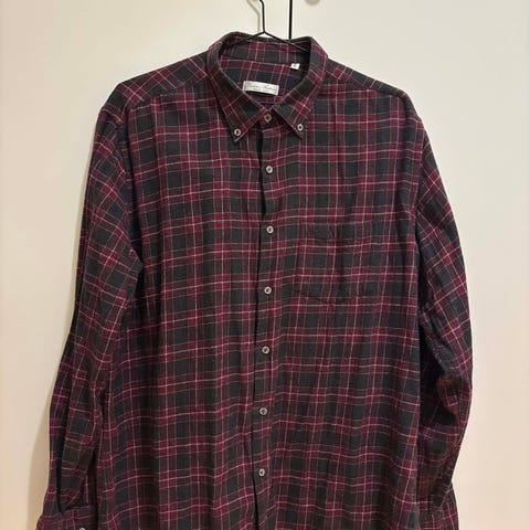 Vihreä ruutupaita. Ohutta lämmintä flanellia. 100% puuvillla, cucita a mano - eli käsin ommeltu. Ostettu Bolognasta muotiliikkeestä, sopii metsätoihin ja viinin maisteluun. 18,5/46