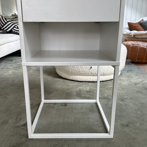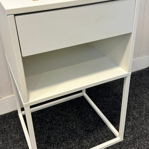 Yöpöydässä käytön jälkiä, mutta muuten ehjä. Pienellä fiksauksella saa pöydästä kuin uuden. Lisätietoa yöpöydästä ikean sivuilla.