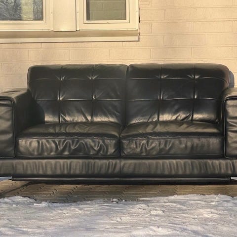 27.10.22 Vepsäläiseltä ostettu laadukas Luna - nahkasohva. Pakksua mustaa nahkaa.