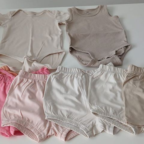 Hyväkuntoisia yhdellä vähän käytettyjä h&m kesävaatteita. Henkselishortsit, shortsit ja kaksi t-paitaa. Ehjät, tahrattomat ja hajuttomat.