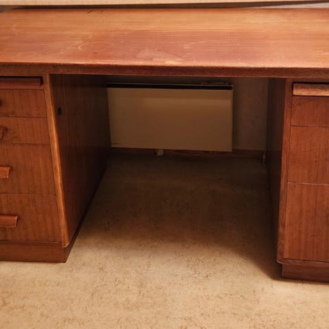 Kotiin tai kotitoimiston kirjoitus-/tietokonepöytä. Laatikosto ja kaappi pyörillä (liikuteltaviissa). Näppäintaso.