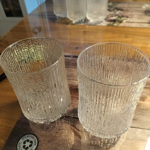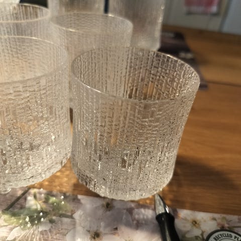 Iittala Ultima Thule lasit kirkasta lasia. Lasien pinnassa on sarjalle tyypillinen kohokuvioitu jääpintaa muistuttava rakenne. Sopivat esimerkiksi vesi-, mehu- tai muiden kylmien juomien tarjoiluun arjessa ja kattauksissa.Korkeus 15 senttiä. Nouto Inkeroinen 4 kpl