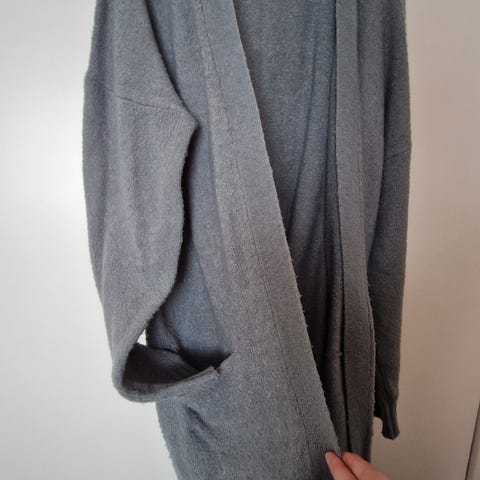 Ohut neuletakki, avonainen ilman nappeja tai naruja. Nätti vinoleikkaus