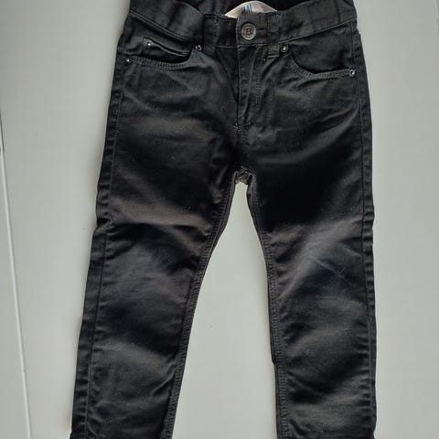 Leveälahkeiset farkut, ehjät ja nukattomat. Toisessa kiristysnarussa tahraa, en ole yrittänyt tahranpoistoa. Mielestäni lyhyttä mallia.
