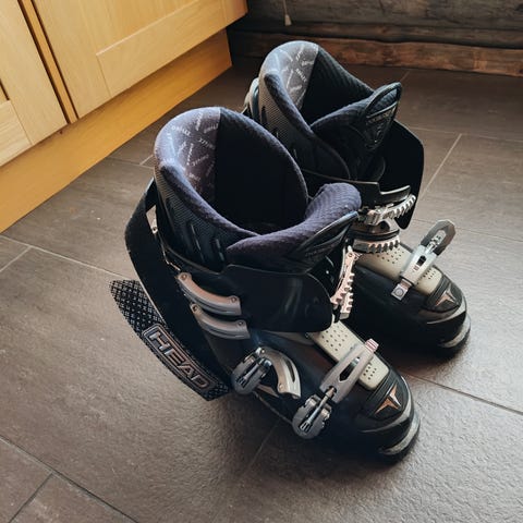 Laskettelumonot, punamustat, koko 41.