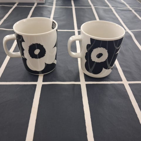 Marimekon korvattomat unikko mukit paketissa.