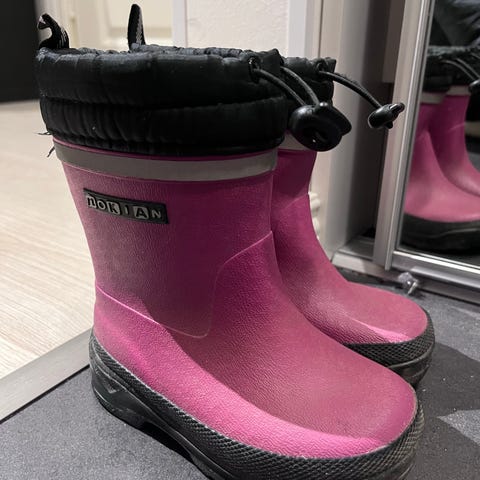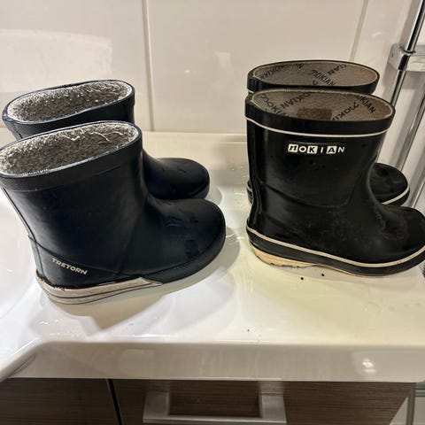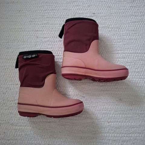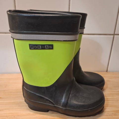 Nokian lasten saappaat, koko 25, unisex-malli. Saappaat ovat kevyet, yhdellä lapsella olleet ja väriltään tummansiniset. Vähän väritys haalistunut, kuten kuvissa näkyy. Varressa on ohut vuori, ja pohja on kuvioitu pidon parantamiseksi. Sopii kesään tai villasukan kanssa viileämmällä säällä.