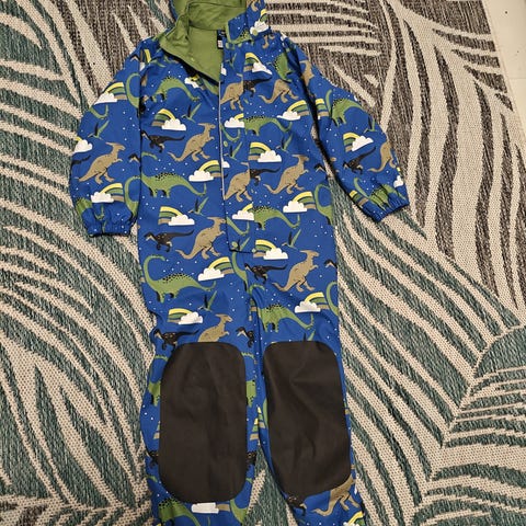 Siisti, ehjä ja lämmin kurahaalari koossa 122. Helppo pukea liukkaan tikkivuorin ansiosta.